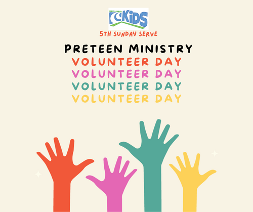 On October 29, 4th-5th graders are invited to love like Jesus by leaving the CCKids preteen classroom, and stepping faithfully into a serving role inside the church. Preteens will have the opportunity to serve in different ministry areas including: technology, ushering, greeting, and more. They will serve alongside seasoned adults and learn the ins and outs of the role. Sign-ups for Serving Sunday will be available at each campus at the CCKids Check-in desk.