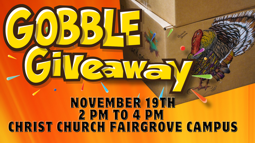 This Sunday at our Fairgrove Campus we hope to bless 800 families in our Community with a meal kit box and a turkey! In faith Christ Church has pre ordered 800 turkeys. We currently still have 325 empty boxes at our campuses that still need to be filled with food for our distribution this Sunday. If you did not pick up an empty box, you can simply bring your groceries in this Sunday and we will have volunteers at your campus to collect and pack your items. Please include $20 to cover the cost of the turkey. For those of you that already have your box filled we will be collecting boxes at each campus until 11:15am Sunday.