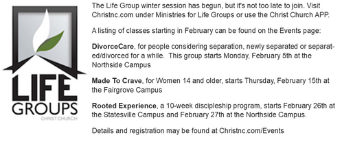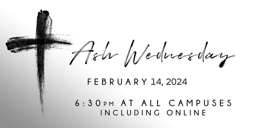 - February 14: Ash Wednesday at 6:30 p.m. at all campuses, so singles, families and couples can celebrate Real Love on Valentine’s Day as we gather to begin the Lenten Journey remembering Jesus’ love for us.
