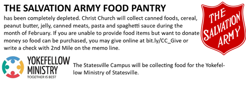 - February’s Second Mile Offering will go to the Salvation Army as they sleep the homeless 365 days a year. Children, women and men are able to have a warm bed.