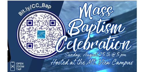 - Sunday, August 25 at 5 p.m. the Christ Church Mt. View Campus will host a Church Wide Baptism service with all campuses coming together to worship and celebrate the gift of Baptism. The message will be different than Sunday morning as we celebrate New Life in Christ. It’s vital that the body of Christ come out and support those being baptized into the Christian Faith and into the Christ Church Family.
