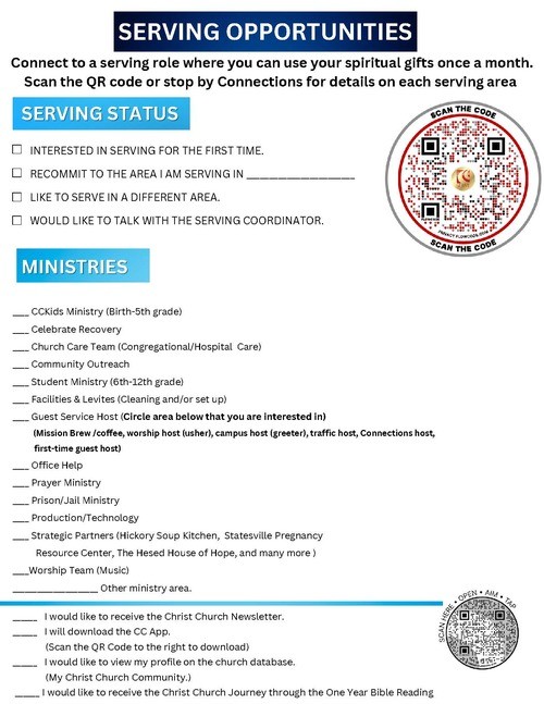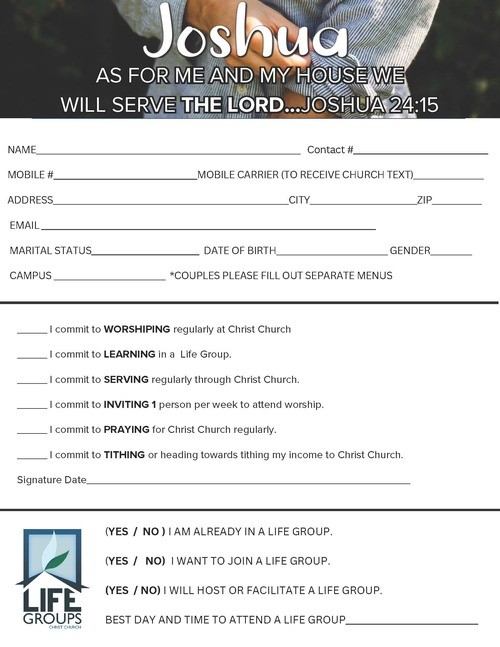 The campus pastors and I want God’s very best for every worshipper and family who has joined the Christ Church family. We want you to grow in God’s grace. The enemy is always seeking to attack us, bring chaos into our personal lives, our families, our business, etc. This is why Joshua, God’s anointed, said to the people of Israel, “As for me and my family, we will serve the Lord.” We expect you to serve, learn, worship, pray, tithe/give, and invite at Christ Church so we can be strong in our faith, encouraged in God’s presence and reach the unchurched in our community.