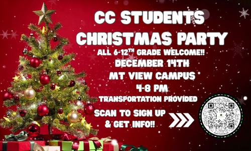 During our Christmas Story & Carols service on December 21 at 5 PM at the Mt. View campus, CCKids will be hosting a special gingerbread-house activity and a Christmas devotion for kids (3 years old & potty-trained through 5th grade). Children are welcome to join us in CCKids or attend the service with their families. Childcare will still be available for kidsages Birth - 2 years old. We need additional volunteers in CCKids for this special night (Dec. 21).